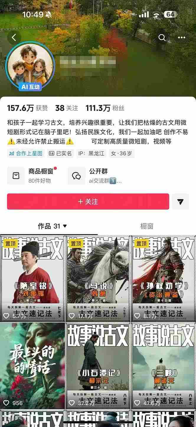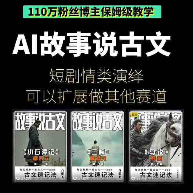 这是一门由110万粉丝博主亲授的AI古文短视频实操课程,系统讲解从文案创作、分镜设计、AI绘图(Midjourney)到视频生成(即梦3.0)、配音控制、平台运营的全流程制作技巧,帮助学员掌握故事说古文类内容的完整生产体系,并可延伸应用于其他短视频赛道。